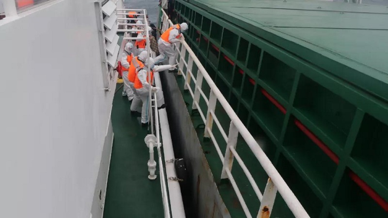 当日,山东威海海警局白石艇在成山头附近海域巡逻时,发现一艘货轮形迹可疑,执法人员立即喊话,要求停船接受检查。经查,该嫌疑船于台湾高雄港装运该批集装箱,后在前往河北曹妃甸卸驳途中被查获。该船无法提供任何载货单、报关手续、海关核税证明及运输许可,涉嫌走私。