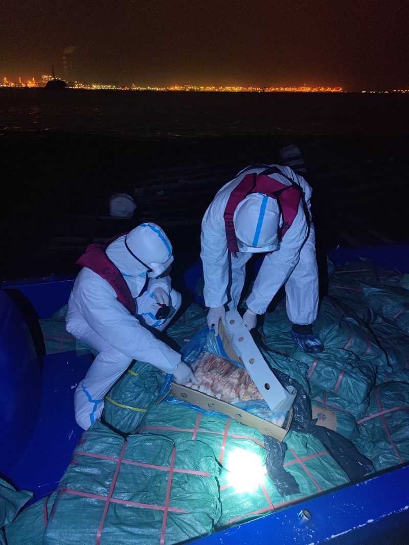 广西钦州海警局坚决贯彻落实上级打击走私“净海”专项行动的部署,严厉打击走私违法犯罪活动,有效净化海域治安。12月3日以来,连续查获各类涉私案件9起,查扣涉案船舶4艘、涉案车辆7辆,抓获违法犯罪嫌疑人3名,查获涉案冻品、盐渍牛百叶、牛板筋、牛肚、牛舌等约23吨,案值约90万元。