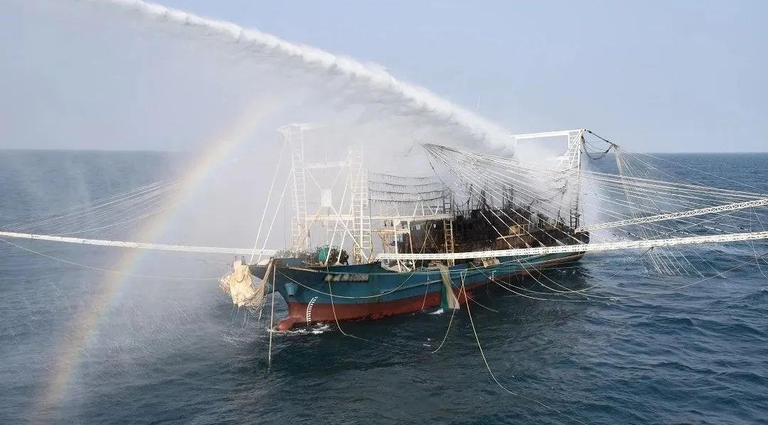 危急之际,距离起火渔船约40海里、正在黄海海域巡航的长山舰接到中国海警局北海分局指令,全速前往事发海域救助起火渔船。