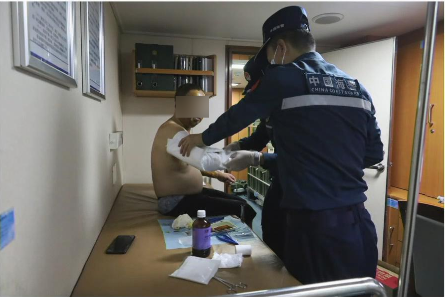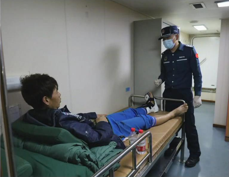 凌晨1时27分,海警执法员安全将2名受伤船员及1名陪护人员转移至万山舰。在海警医护人员悉心照料下,伤员伤情很快得到控制。
