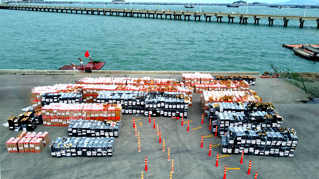 11月17日,福建漳州海警局联合漳州市烟草局在漳州市兄弟屿附近海域查获一起走私普通货物案,现场查扣涉案船舶1艘,查获涉嫌走私香烟60000余条,案值约2000万元。
